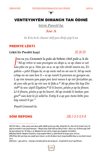 Liv sa genyen lèkti ak levanjil lamès chak dimanch Tan Pak - Tan Òdinè - Ane A. Yon bon Gid pou tout kretyen Katolik.