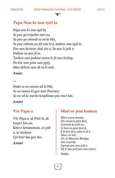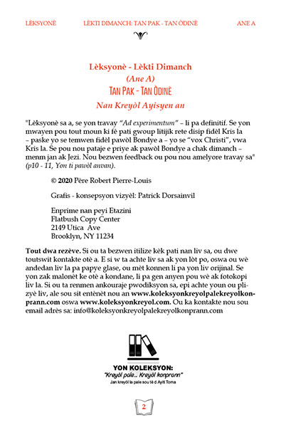 LEKSYONÈ: LÈKTI DIMANCH, TAN PAK - TAN ÒDINÈ (ANE A)
